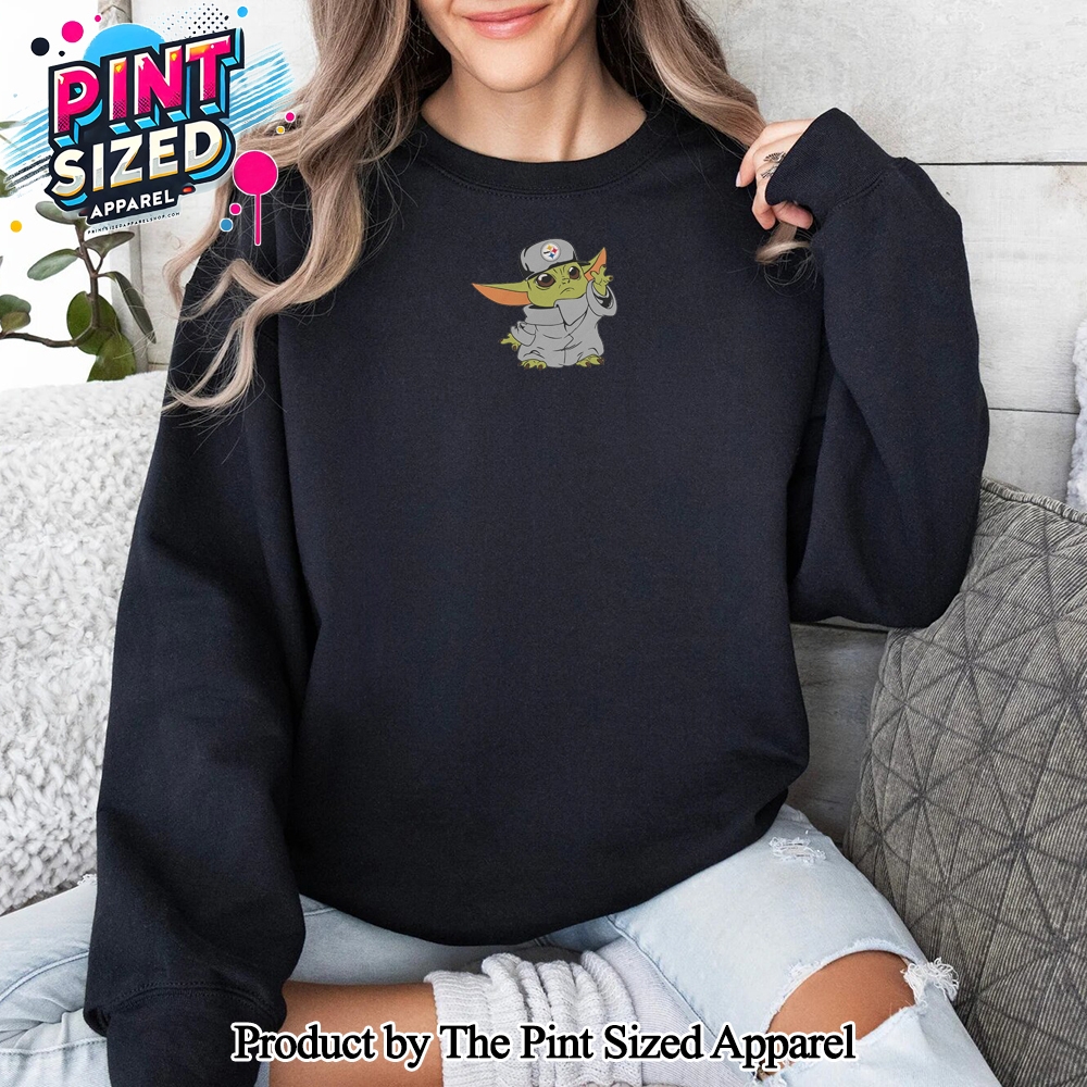 Product Description Of Pittsburgh Steelers x Baby Yoda For NFL Fans Embroidered Shirt