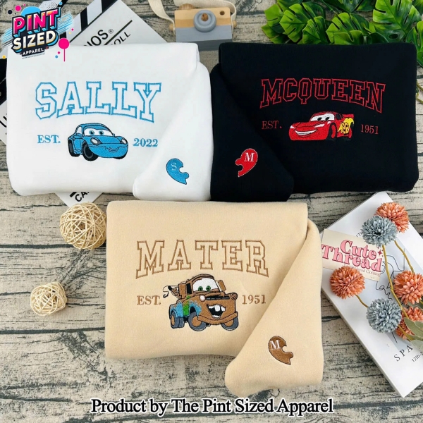 Pixar Cars Lightning McQueen and Mater Unisex Embroidered Shirt