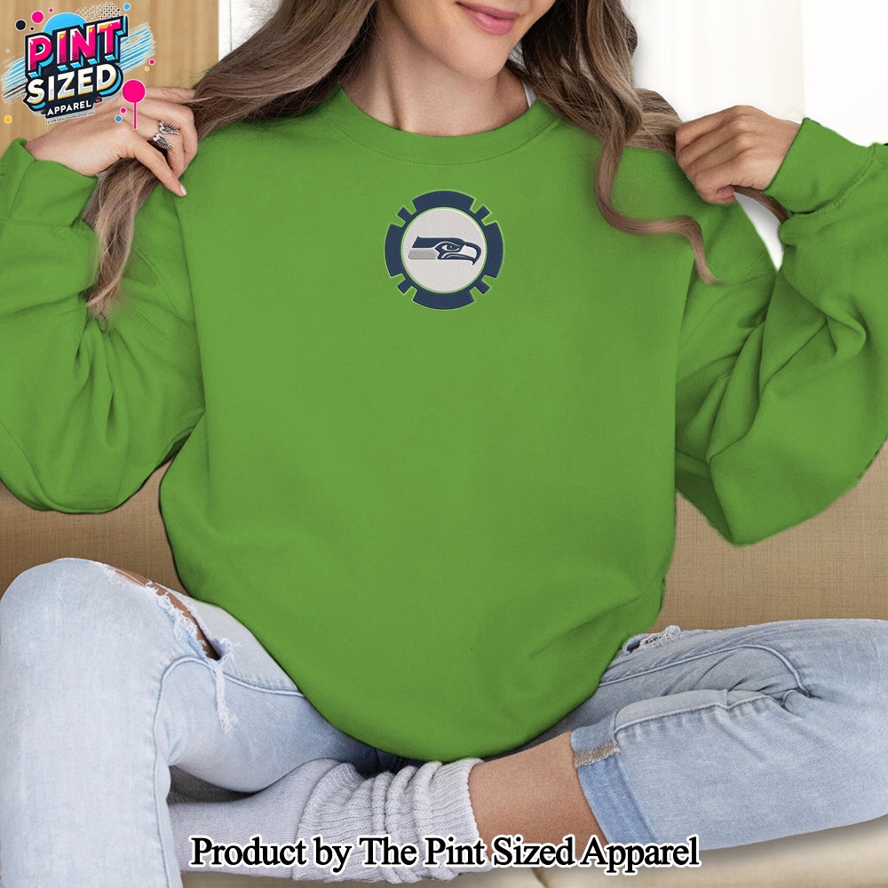 Product Description Of Seattle Seahawks Poker Chip Ball Embroidered Crewneck Sweatshirt